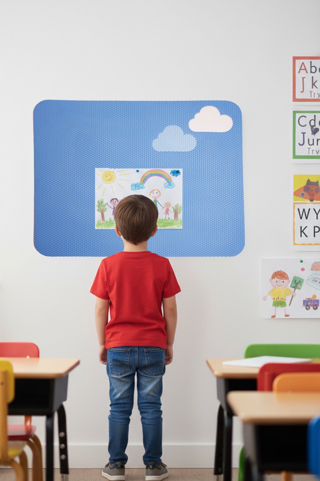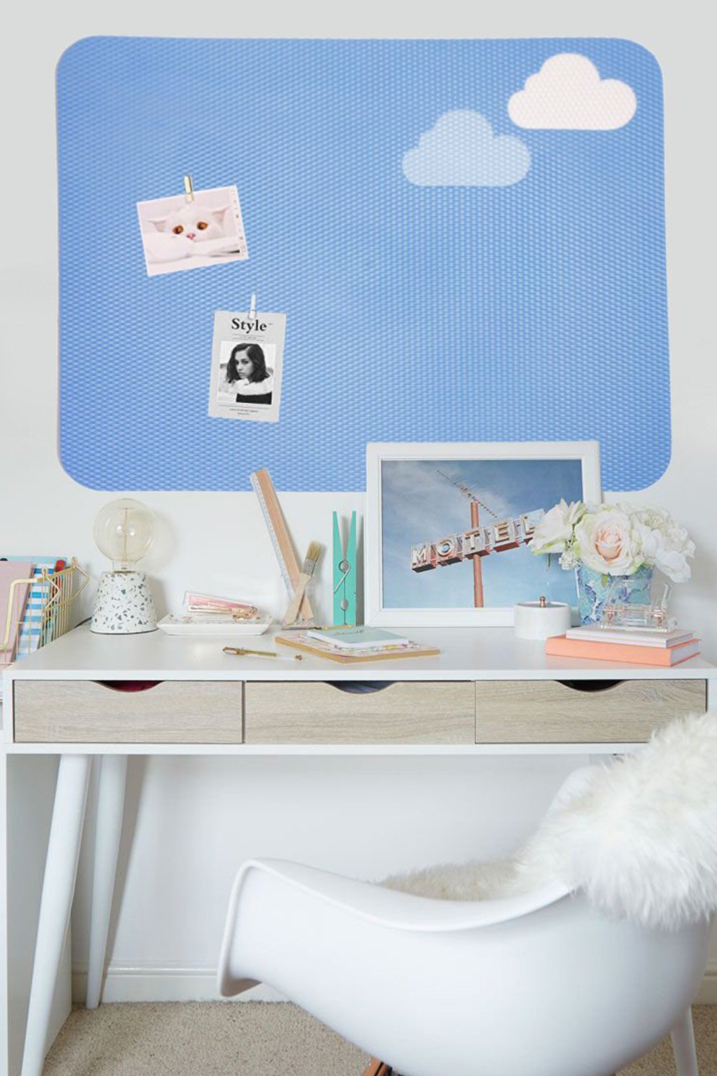 Připevněte své nápady, vzkazy nebo obrázky na pěnovou nástěnku s mráčky a dovolte svým přáním vznést se až do oblak.