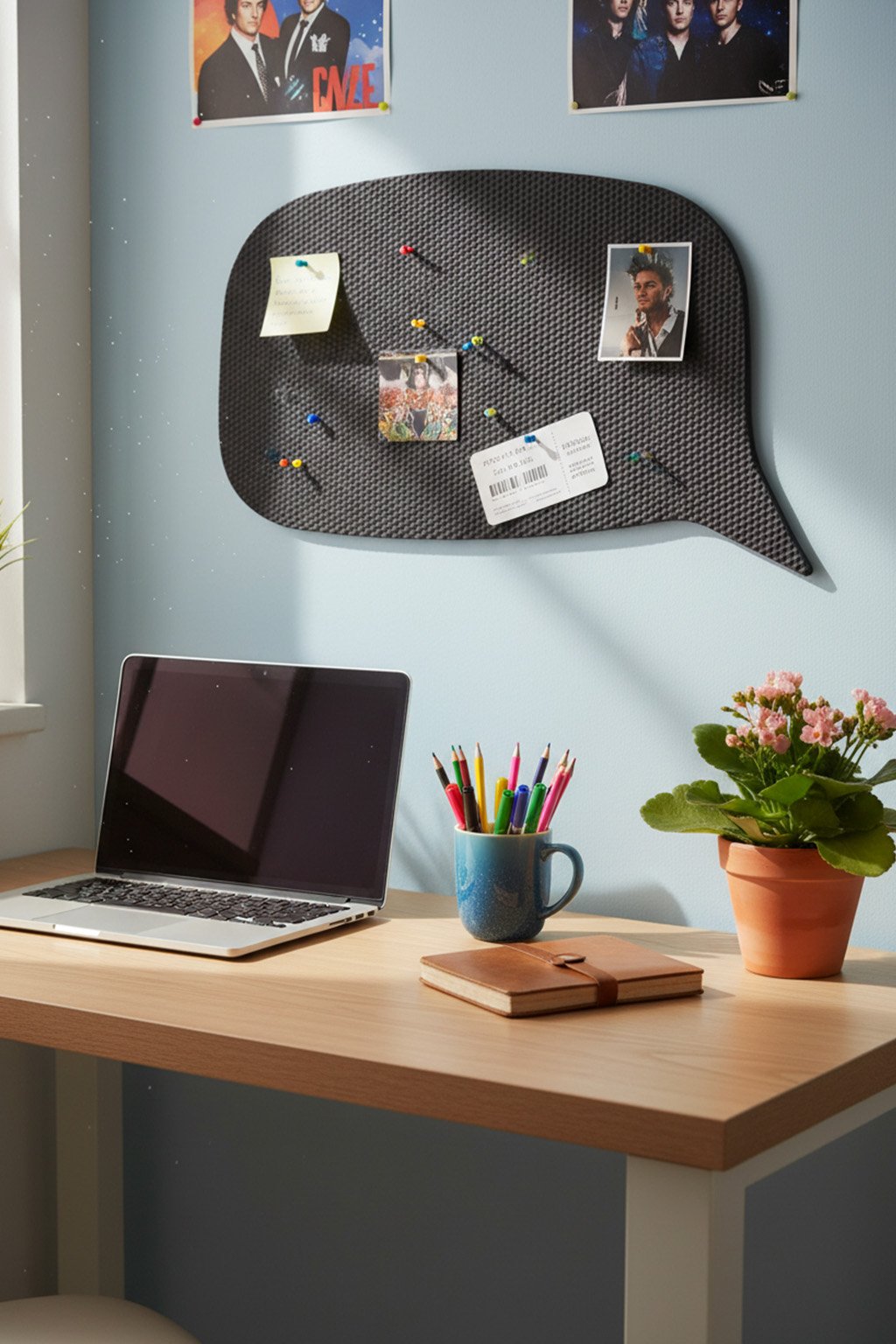 Originální nástěnka ve tvaru komixové bubliny poslouží na vzkazy, poznámky nebo třeba rozvrh hodin.