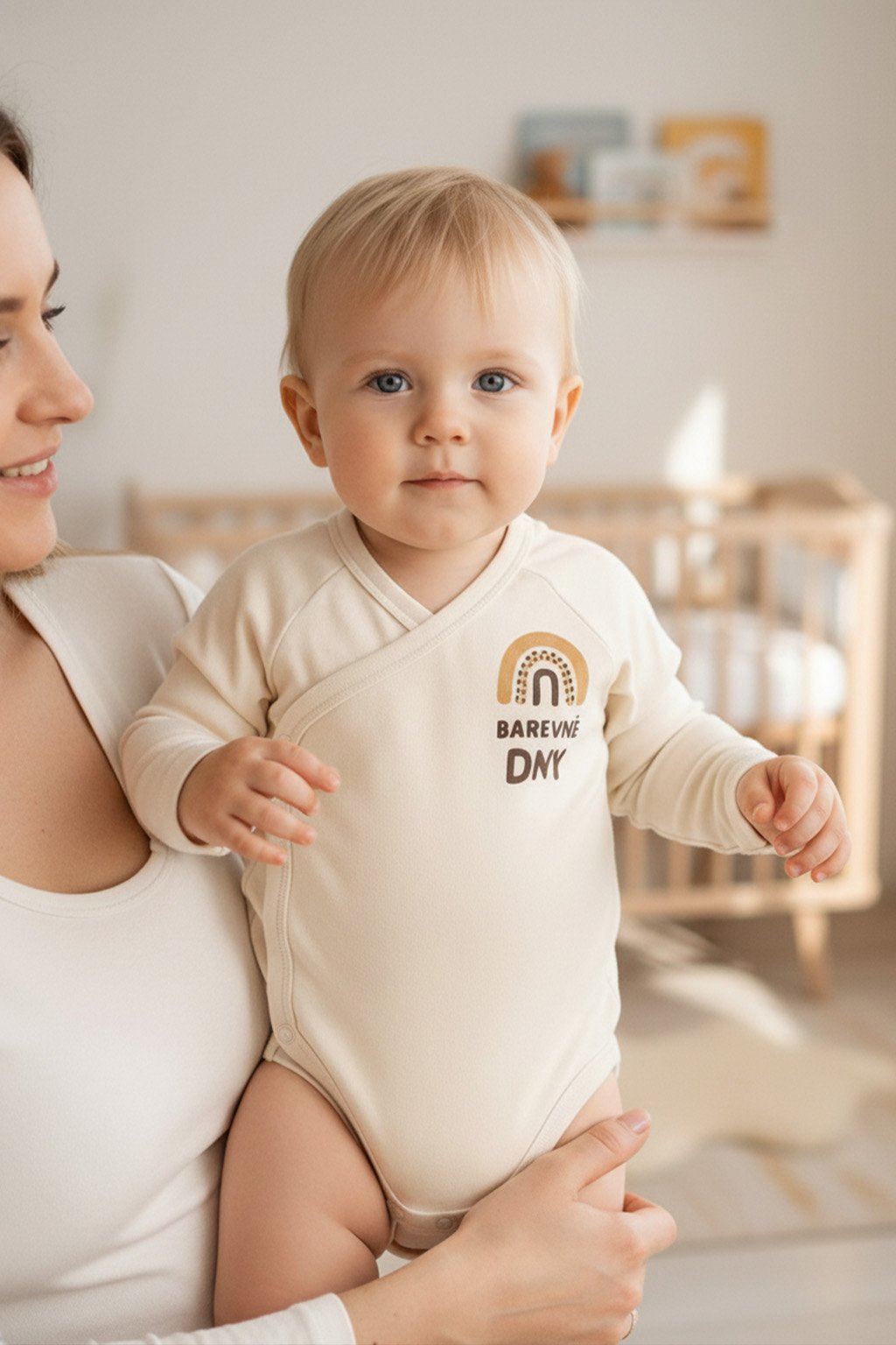 Body s dlouhým rukávem a potiskem duhy je ideálním společníkem pro každodenní chvíle - od prvních ranních úsměvů až po klidné spinkání. Díky zavinovacímu střihu se snadno obléká i těm nejmenším, a krémová barva ladí s každým dětským šatníkem.