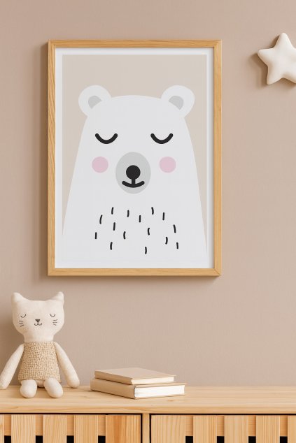Ilustrovaný plakát s roztomilým bílým medvědem přinese do interiéru jemnost a klid. Minimalistický motiv se hodí do dětského pokoje i moderního domova a snadno se kombinuje s...