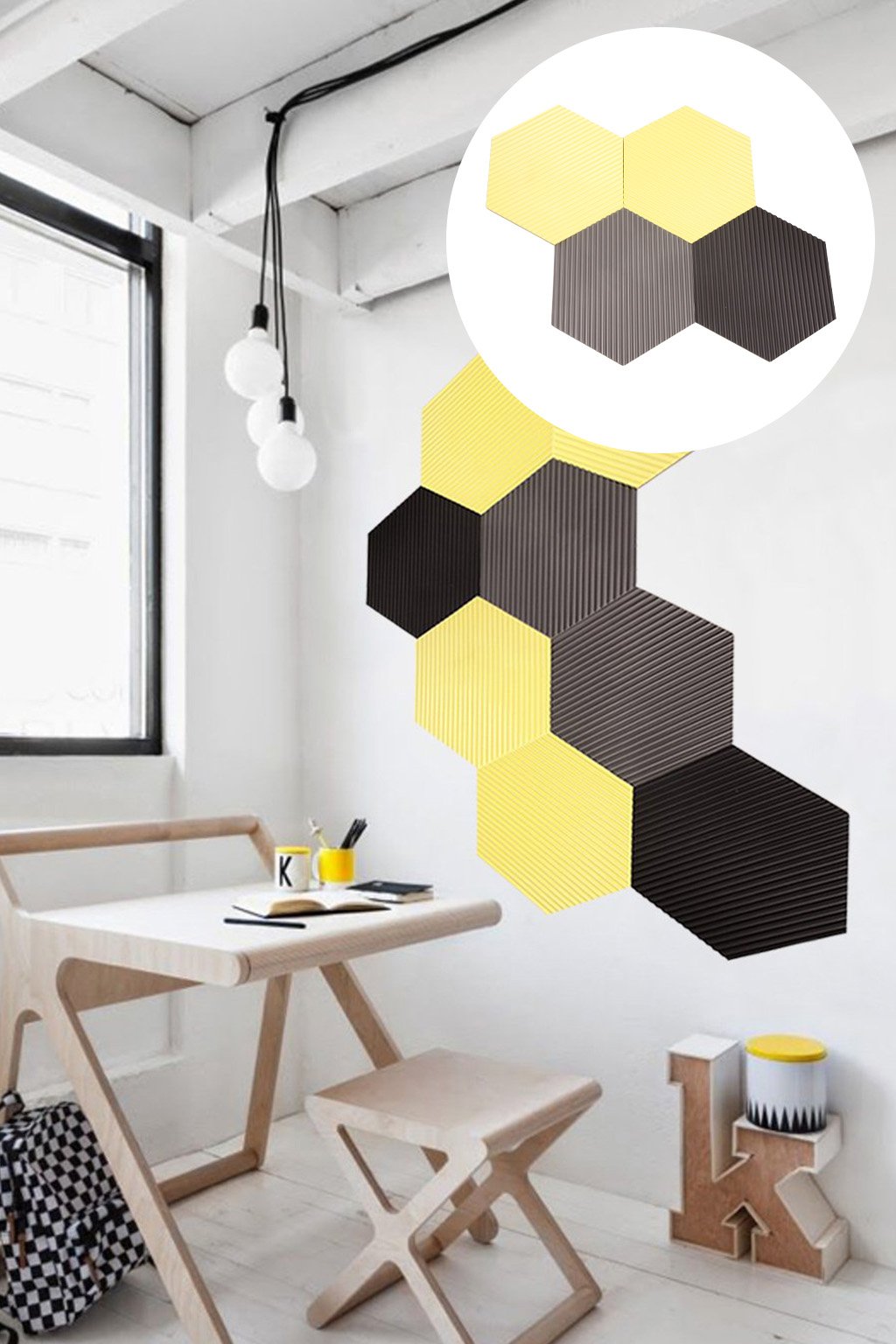 POLYGON je 3D dekorace a ochrana stěn do interiéru. Nově s proužkovým reliéfem.