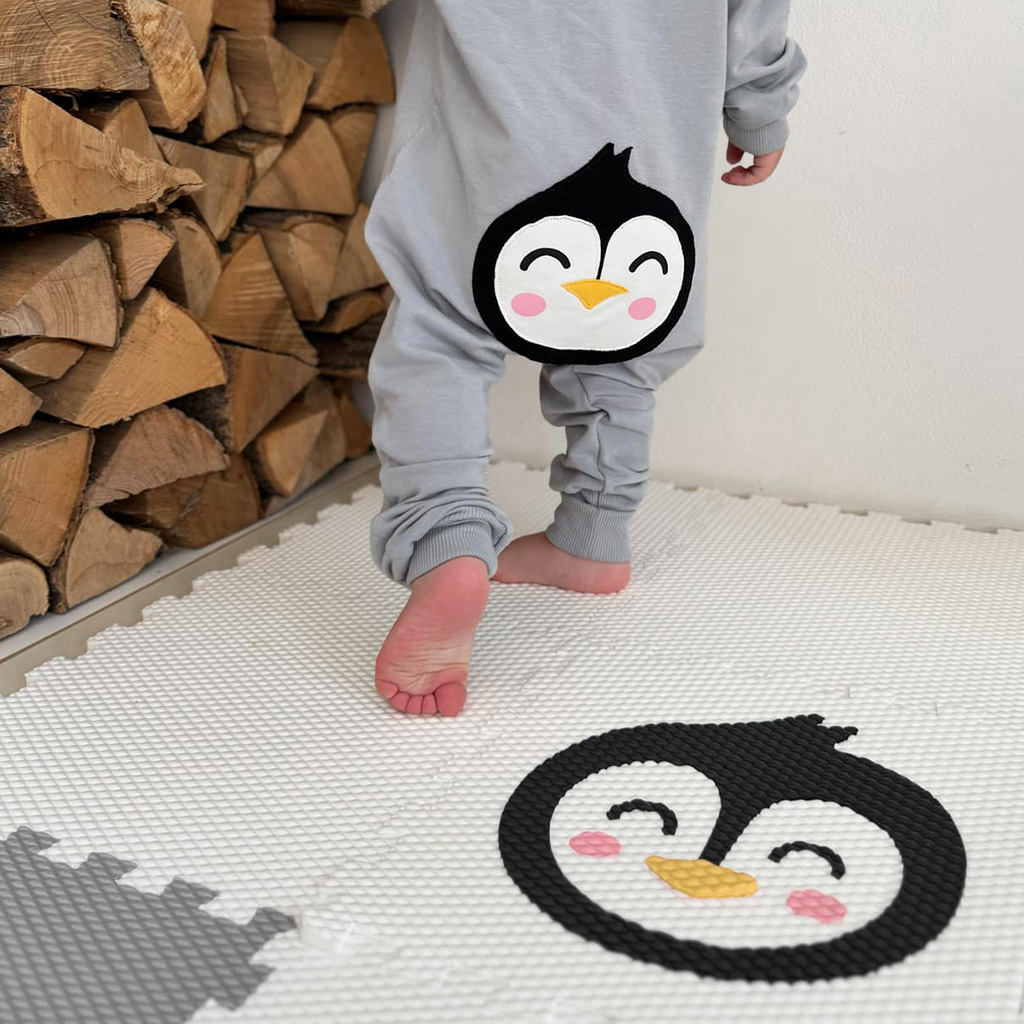 Tučňák, kterého znáte z podlah Minideckfloor, nyní zdobí i oblečení pro vaše nejmenší! Tepláčky a overálky s tímto roztomilým motivem umožní, aby bylo vaše miminko dokonale sladěné s podložkou. Perfektní harmonie stylu a pohodlí!