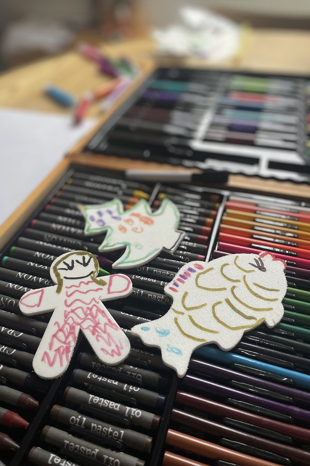 Díky skvělému a snadno omyvatelnému materiálu VYLEN ® můžete na perníčky temperami, vodovkami či fixami opakovaně malovat.