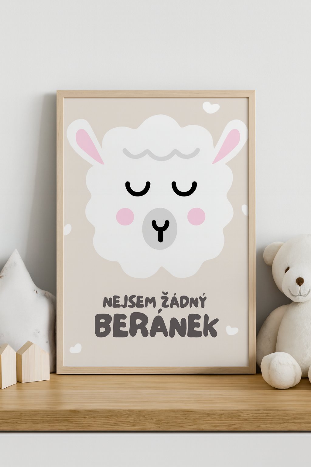 Plakát s ilustrací beránka a nápisem „Nejsem žádný beránek“ vnese do prostoru hravost a lehký humor. Originální motiv potěší jako netradiční dekorace do bytu i jako vtipný dárek.