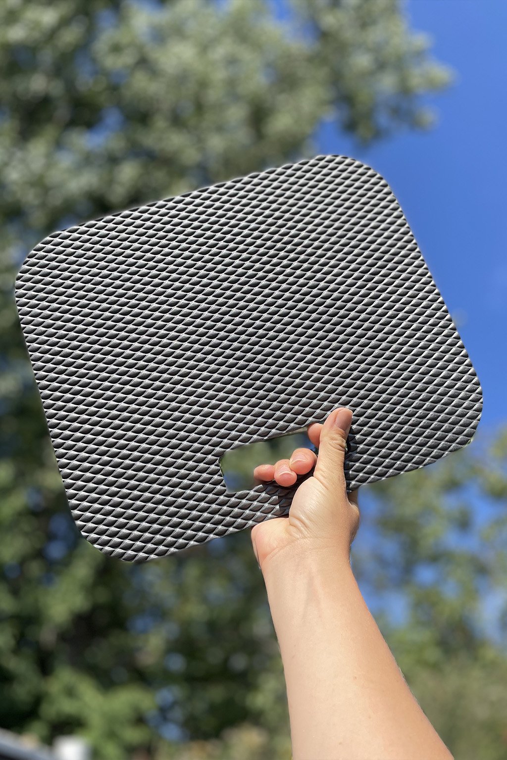 Pěnový podsedák s madlem je vyroben z vysokolehčeného síťovaného polyethylénu české výroby VYLEN®, který je opatřený certifikátem o zdravotní nezávadnosti. Vhodný i pro alergiky. Podsedák izoluje chlad, hřeje, je měkký, lehký a má příjemný povrch. Nesaje vodu ani pot a je omyvatelný. Můžete ho využívat i u vody.