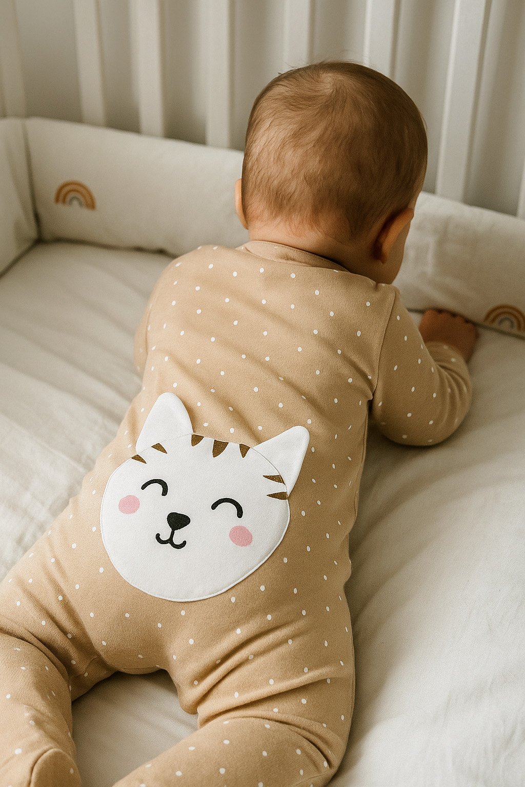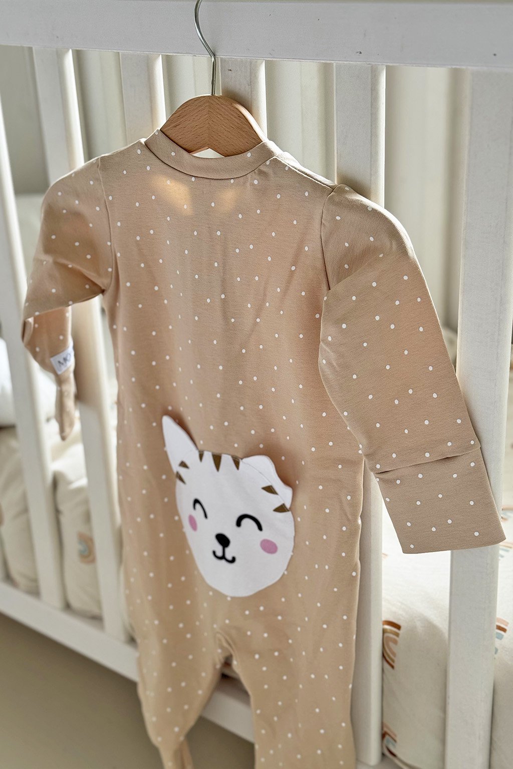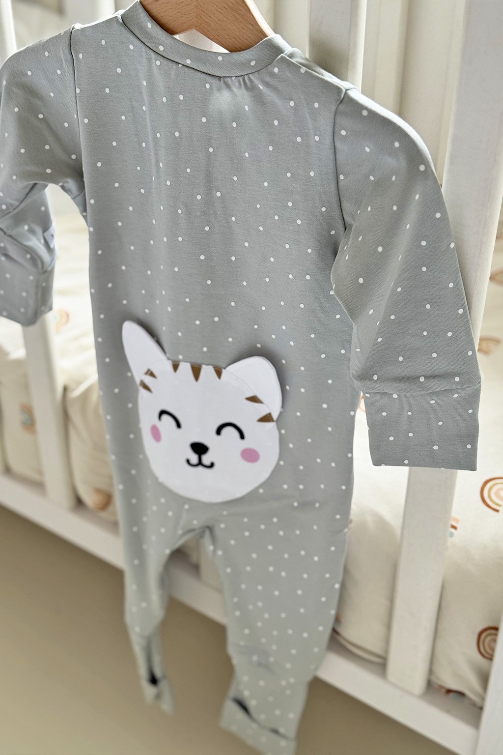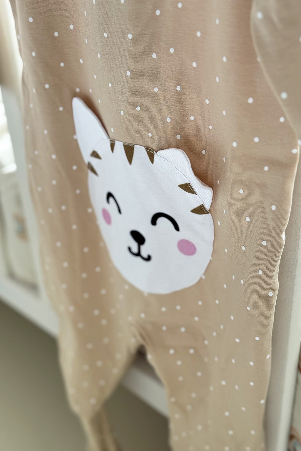 Dětský rostoucí overal na zip s motivem kočičky na zadečku. Díky rostoucím rukávům a nohavicím vydrží minimálně 3 běžné velikosti. Můžete si vybrat, zda bude mít dítě nožičky venku nebo zakryté v overalu. Ručně šitý v ČR. Velikosti od narození až do 4 let.