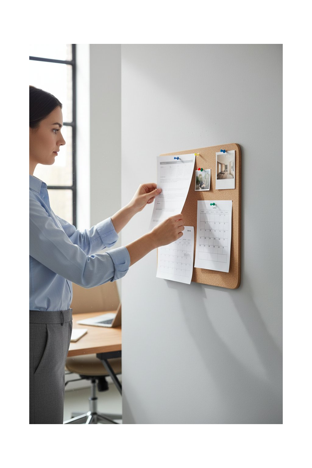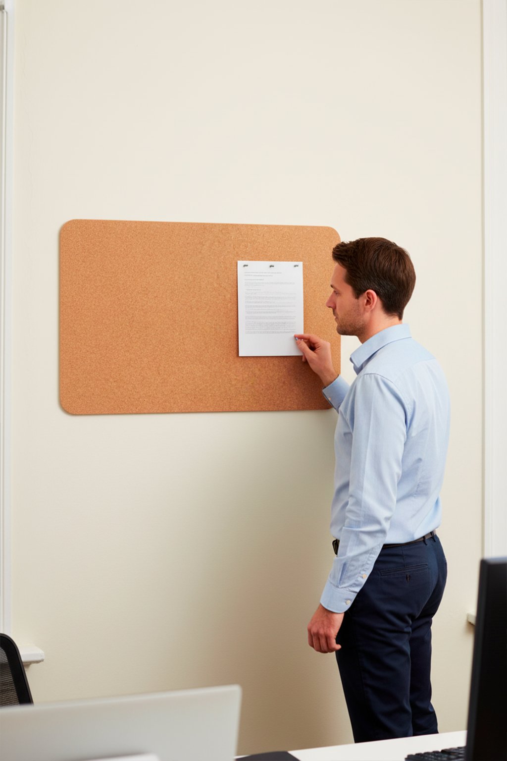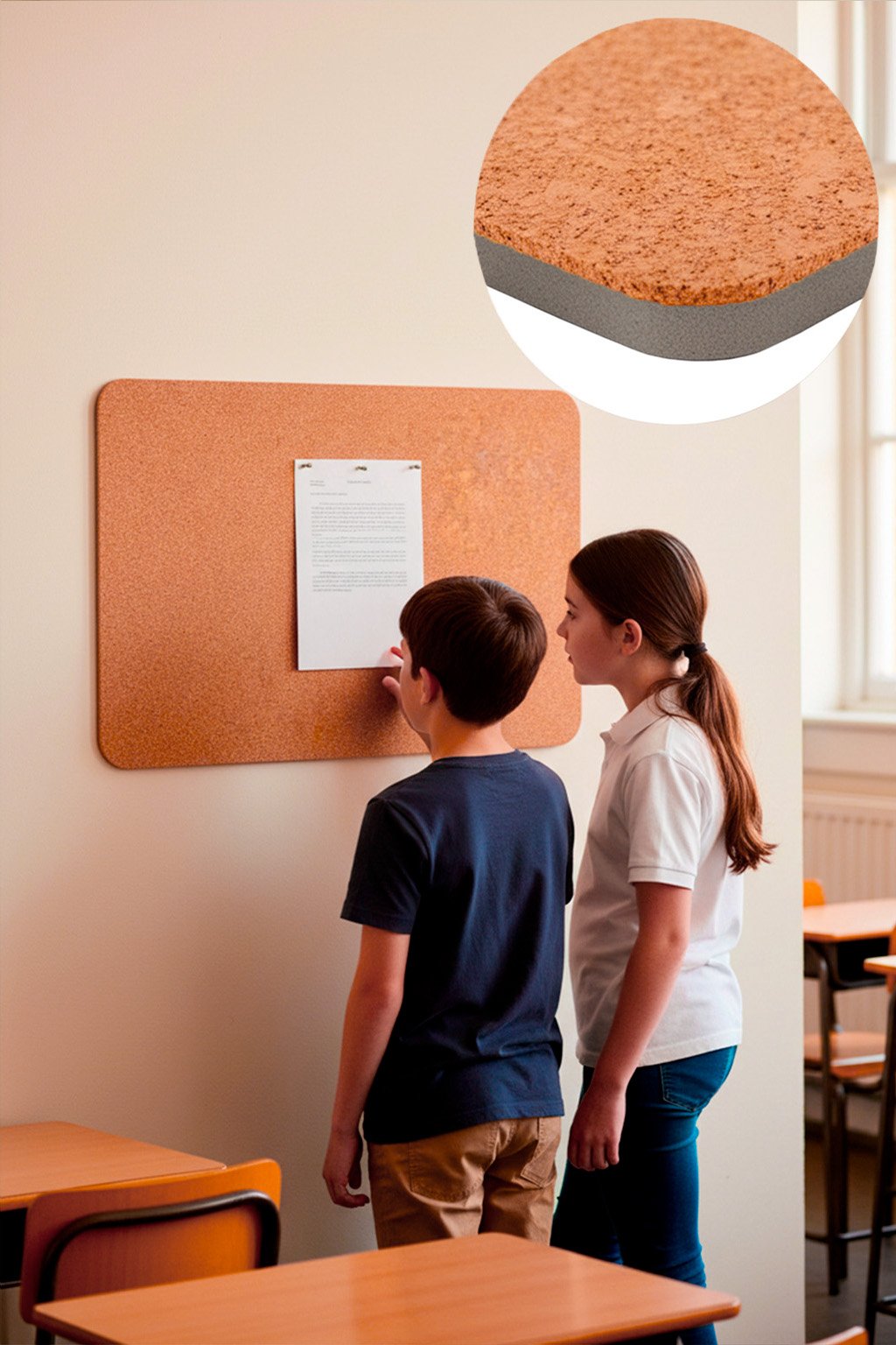 Povrch z pravého korku dodává nástěnce teplý a přirozený vzhled. Uvnitř se ale skrývá lehké a odolné pěnové jádro, díky kterému špendlíky snadno proniknou dovnitř, pevně drží a vpichy zůstávají nenápadné.