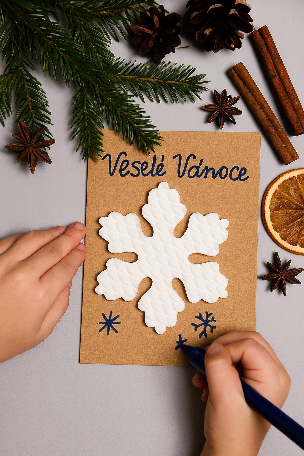 Vločky k výrobě vánočních dekorací a přáníček.